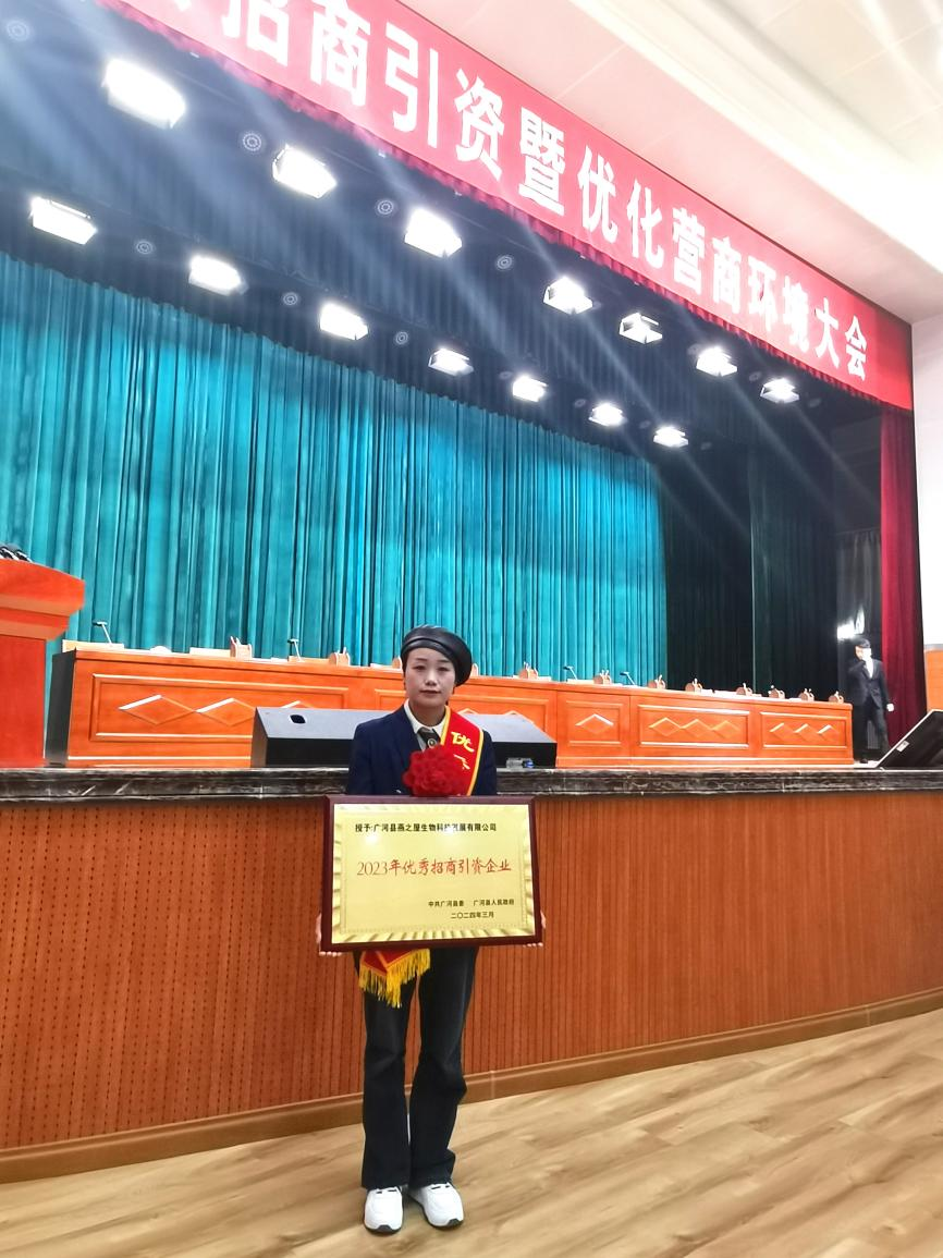 圖:廣河縣燕之屋生物科技發(fā)展有限公司被評(píng)為“2023年優(yōu)秀招商引資企業(yè)”