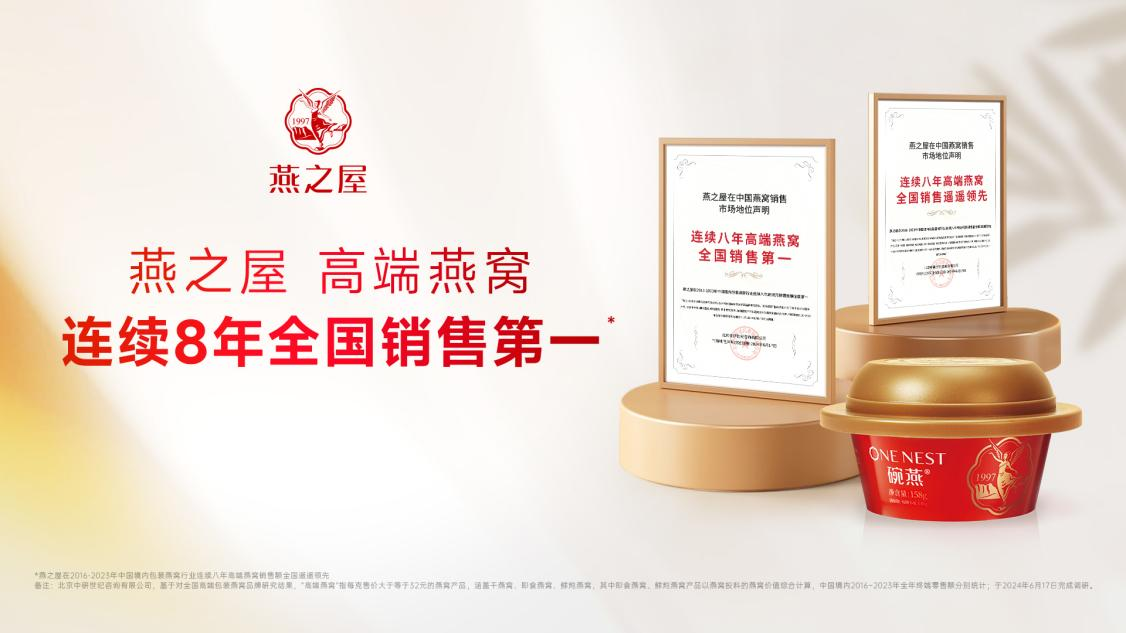 效法羲和馭天馬,志在長空牧群星。兩鬢斑白的方成如今還會時常想起自己20歲時的那個夏天,不甘人后、不畏艱險,向著光的方向一往無前。作為燕窩行業(yè)的頭部企業(yè),燕之屋同樣堅(jiān)持著長期主義,秉承著“一碗好燕窩,滋潤天下人”的初心,26年來深耕不輟,為消費(fèi)者帶來更健康、更營養(yǎng)、更美味、更便捷的燕窩滋養(yǎng)體驗(yàn),為國民的高品質(zhì)美好生活助力。截至2023年,燕之屋已連續(xù)八年高端燕窩全國銷售第一*(*燕之屋在2016-2023年中國境內(nèi)包裝燕窩行業(yè)連續(xù)八年高端燕窩銷售額全國第一,備注:北京中研世紀(jì)咨詢有限公司,基于對全國高端包裝燕窩品牌研究結(jié)果,“高端燕窩”指每克售價大于32元的燕窩產(chǎn)品,涵蓋干燕窩、即食燕窩、鮮燉燕窩,其中即食燕窩、鮮燉燕窩產(chǎn)品以燕窩投料的燕窩價值綜合計(jì)算,中國境內(nèi)2016-2023年全年終端零售額分別統(tǒng)計(jì);于2024年6月17日完成調(diào)研)。