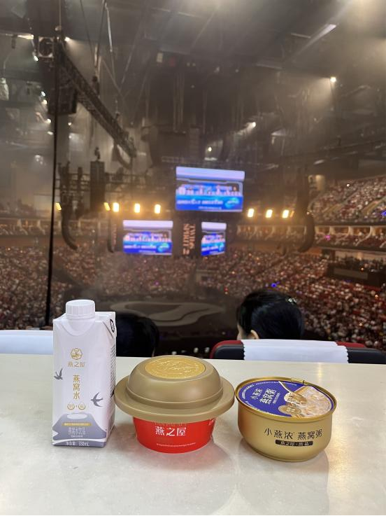 燕之屋專屬貴賓包廂位于場館包廂層觀演區(qū),以獨立豪華私享空間、劇場型座椅、餐飲服務(wù)等高級配置,為客戶打造舒適、自由、高品質(zhì)的觀演新體驗。包廂客戶不僅可以享受專屬便捷入場通道、視野廣闊的沉浸式觀演,還可享用燕之屋小燕濃燕窩粥、燕之屋燕窩肽天然蘇打水,升級美好視聽盛宴。燕之屋借助持續(xù)火爆的演出市場,將品牌傳播與演唱會創(chuàng)新結(jié)合,通過邀請觀看演唱會的方式答謝忠實客戶,深受客戶喜愛。