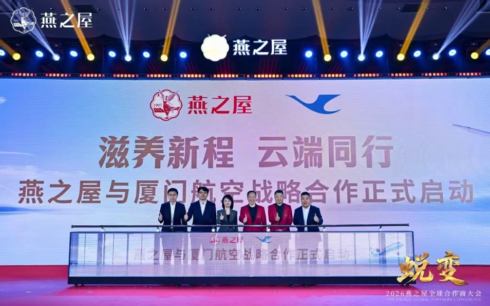 獨(dú)行快,眾行遠(yuǎn)。與各領(lǐng)域佼佼者強(qiáng)強(qiáng)聯(lián)手,一直是燕之屋持續(xù)蛻變升級(jí)的重要戰(zhàn)略。作為大會(huì)的一項(xiàng)議程,燕之屋與廈門(mén)航空戰(zhàn)略合作在會(huì)議期間正式啟動(dòng)。雙方將依托同屬?gòu)B門(mén)本土企業(yè)的地緣優(yōu)勢(shì),共同探索航空服務(wù)與健康產(chǎn)業(yè)的跨界融合路徑。廈門(mén)航空文化傳媒科技公司書(shū)記顏坤玲,燕之屋創(chuàng)始人、董事長(zhǎng)黃健,副董事長(zhǎng)鄭文濱,執(zhí)行董事、總裁李有泉等雙方領(lǐng)導(dǎo)出席儀式。